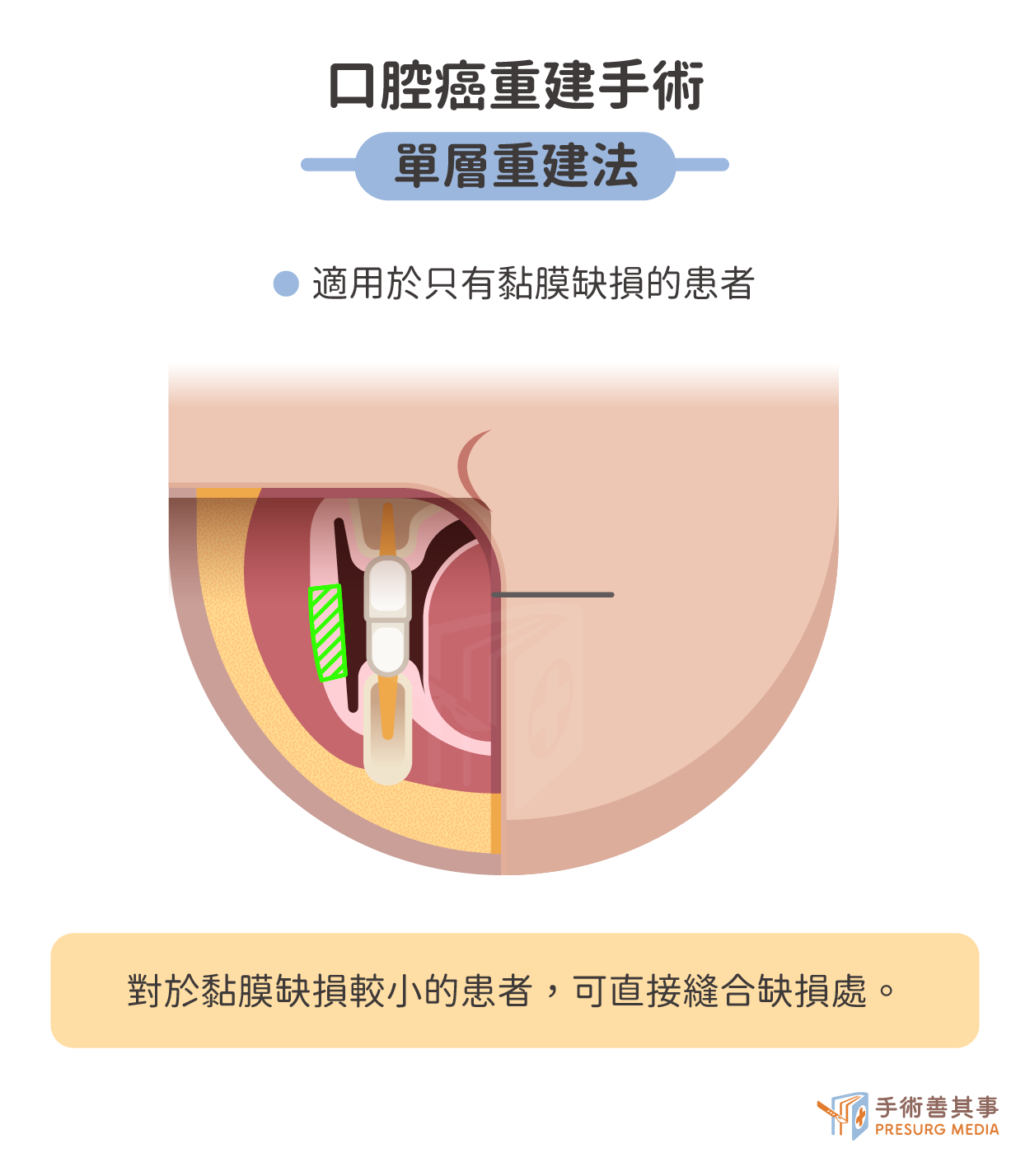 單層重建法:適用於口腔黏膜缺損較小的患者