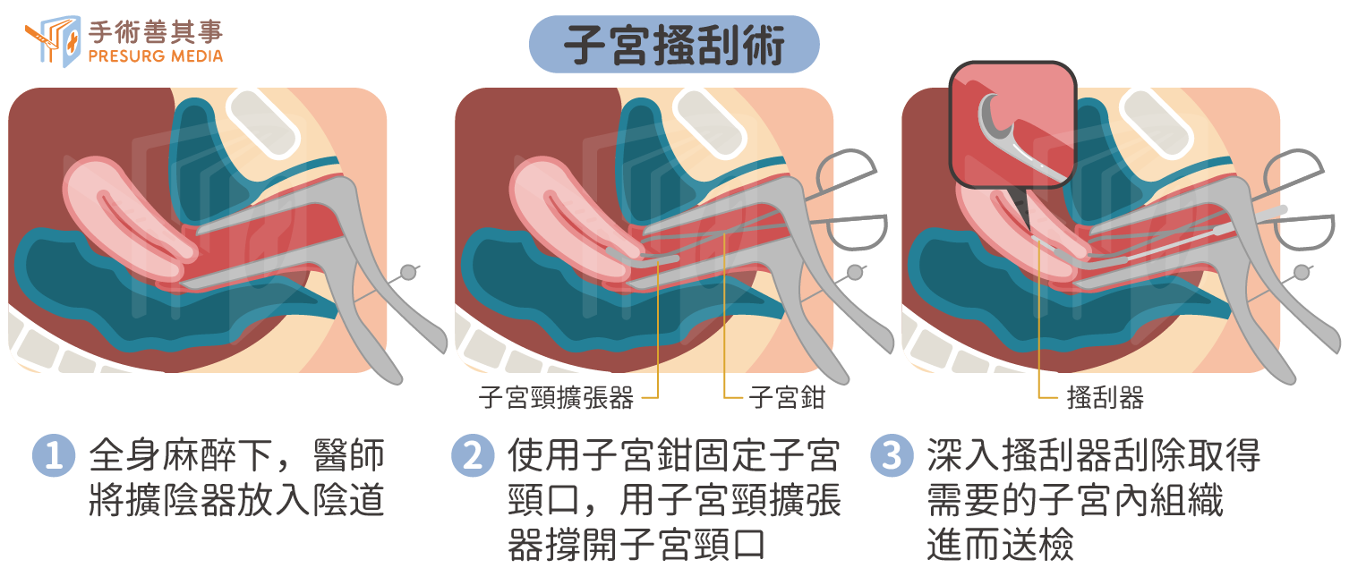為婦科醫師常施作的手術之一,通常拿來診斷或治療子宮不正常出血,及幫助診斷子宮體癌症。方法為擴張子宮頸後,將器械放入子宮腔內刮搔組織,取得標本後送往檢查。