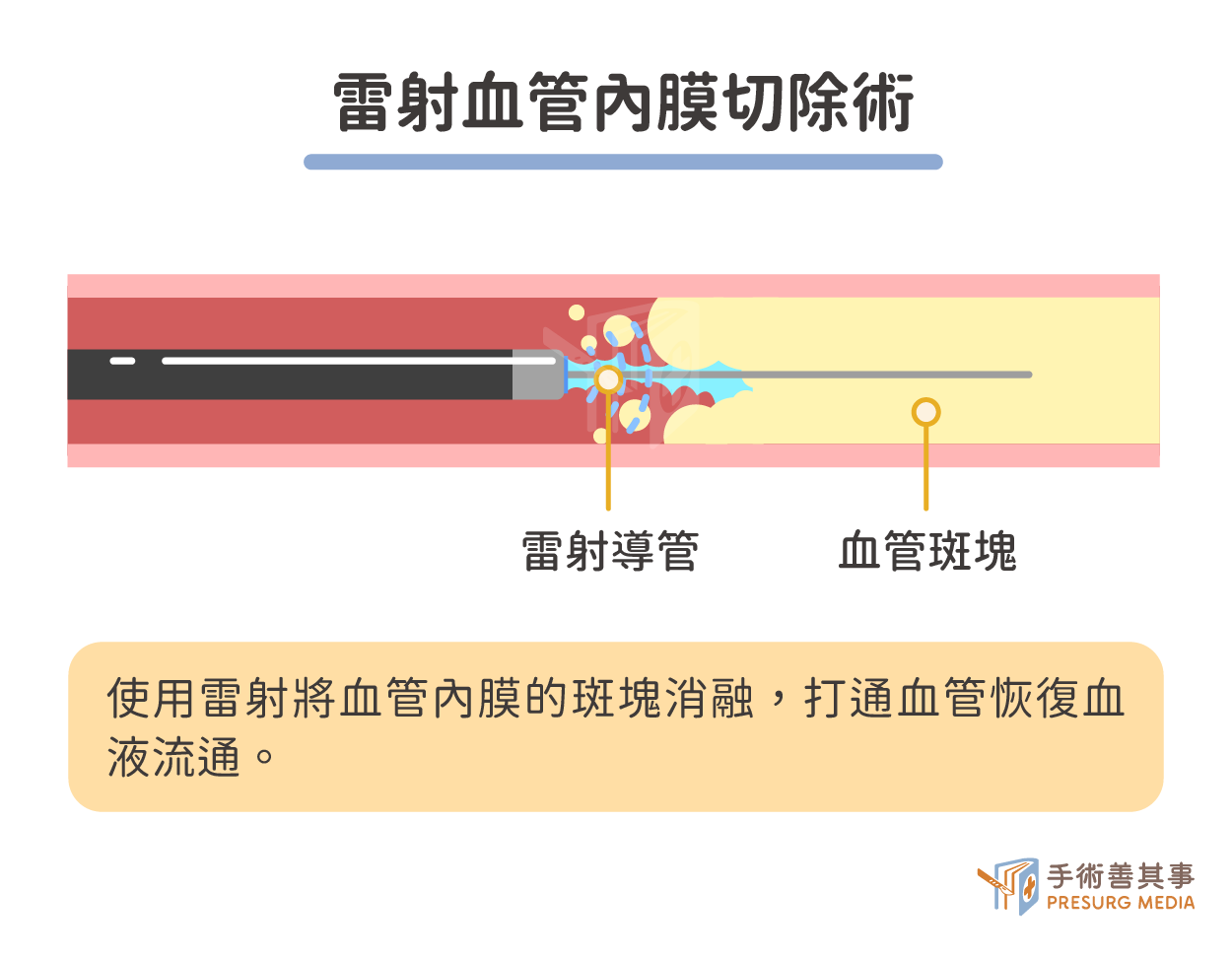 - 醫生使用雷射將血管內膜的斑塊消融。